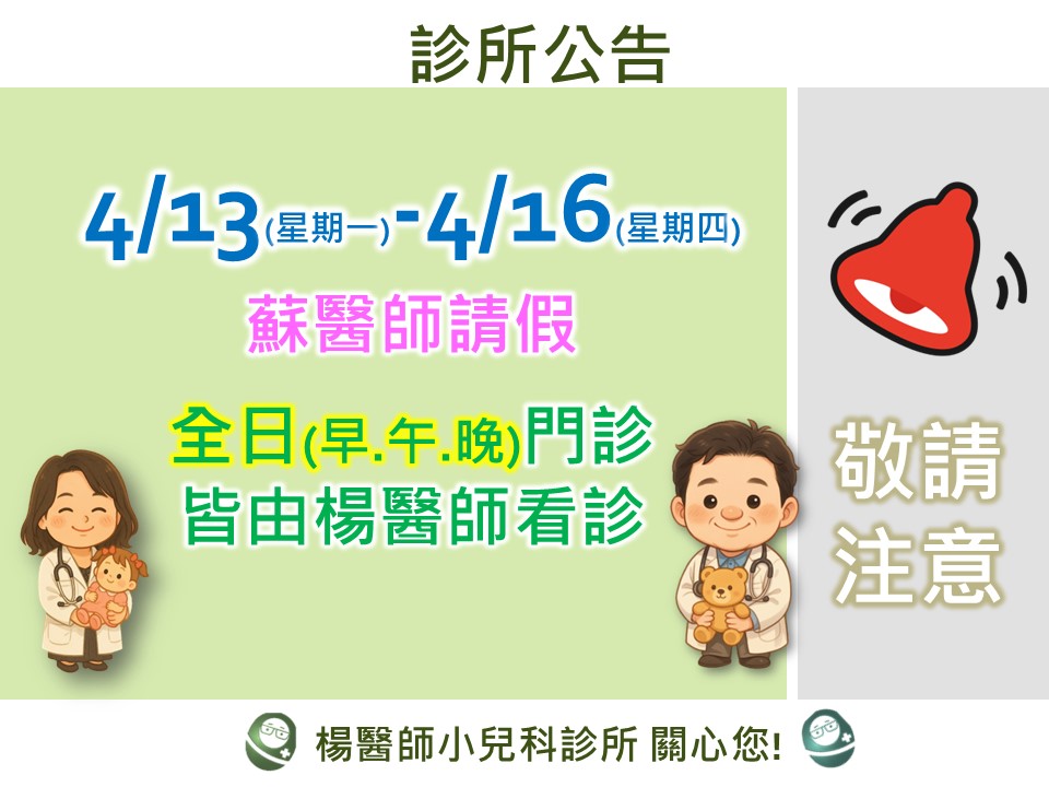 #楊醫師小兒科診所 #門診異動 #守護孩子的健康